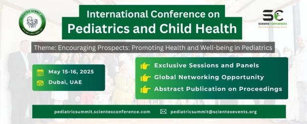 We are glad to invite researchers, pediatric practitioners, healthcare professionals, and pediatric field enthusiasts from all around the world to the "International Conference on Pediatrics and Child Health" this forum, takes place on May 15-16, 2025 in Dubai, UAE, and will focus on the theme "Encouraging Prospects: Promoting Health and Well-being in Pediatrics". The Pediatric Summit 2025 will feature a variety of programs, including keynotes, seminars, posters, video presentations, e-posters, and business showcases.