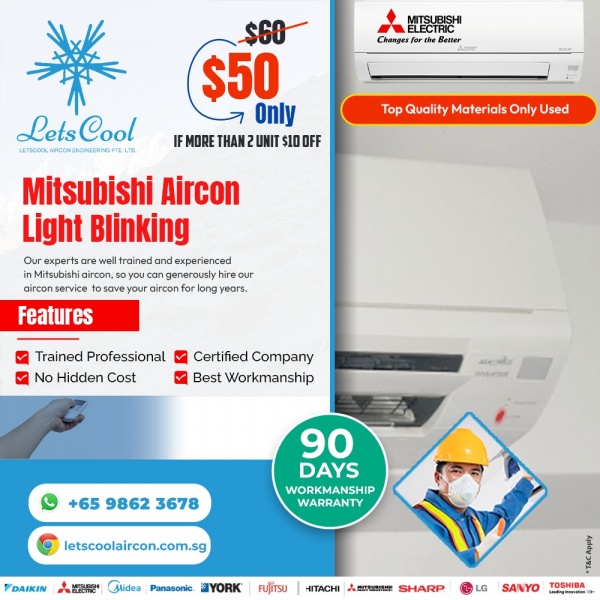 Mitsubishi Aircon Blinking Light? LetsCool Is Here to Help! A flashing light on your Mitsubishi aircon often signals an internal issue that needs professional attention. Whether it's a malfunctioning sensor, refrigerant problem, or system fault, it’s important not to overlook the warning. The expert team at LetsCool Aircon specialises in identifying and fixing Mitsubishi aircon errors with speed and precision. We'll restore your unit’s performance and ensure your comfort is uninterrupted. Avoid costly breakdowns—reach out to LetsCool today for fast and reliable aircon troubleshooting and repair!