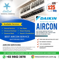 LetsCool Aircon offers professional Daikin aircon services across Singapore for homes and businesses. Our experienced technicians ensure proper installation and efficient performance. We provide fast ...