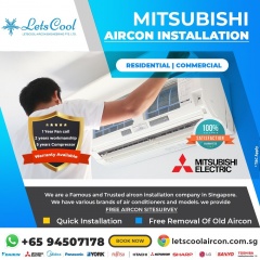 LetsCool Aircon delivers expert Mitsubishi aircon installation across Singapore. Our skilled technicians manage both home and commercial projects with care and accuracy, ensuring reliable performance ...
