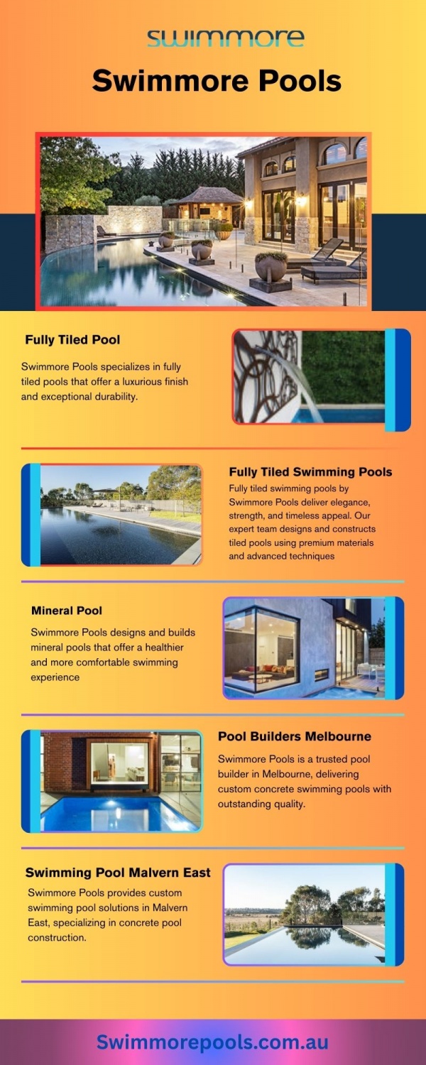 A concrete pool by Swimmore Pools offers unmatched durability, flexibility, and design freedom. We create custom concrete pools tailored to your space, lifestyle, and aesthetic preferences. From sleek modern designs to classic family pools, our team ensures superior craftsmanship and long-term performance. Concrete pools allow for unique shapes, finishes, and features, making them a premium choice for homeowners seeking quality and personalization.