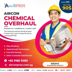 Ensure your air conditioner performs at its best with our chemical overhaul service in Singapore, now just $90 per unit. At Airconpros, our skilled technicians ...