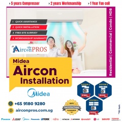 The AirconPros specialize in professional Midea air conditioning installation services across Singapore for HDBs, condos, and commercial spaces. They are reputed for having innovative technology ...
