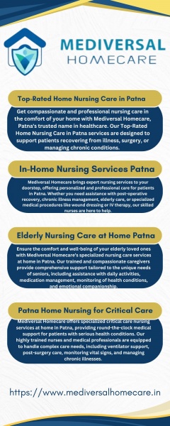 Get compassionate and professional nursing care in the comfort of your home with Mediversal Homecare, Patna's trusted name in healthcare. Our Top-Rated Home Nursing Care ...