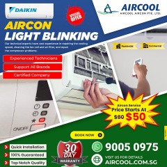 Is your Daikin Aircon light blinking? Aircool Aircon offers expert diagnostic and repair services for Daikin air conditioning units in Singapore. Our skilled technicians can ...
