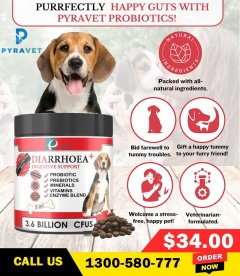 Is your dog suffering from Diarrhea? If so, then look at our incredible probiotics designed for dogs at a low cost. These probiotics are extremely ...