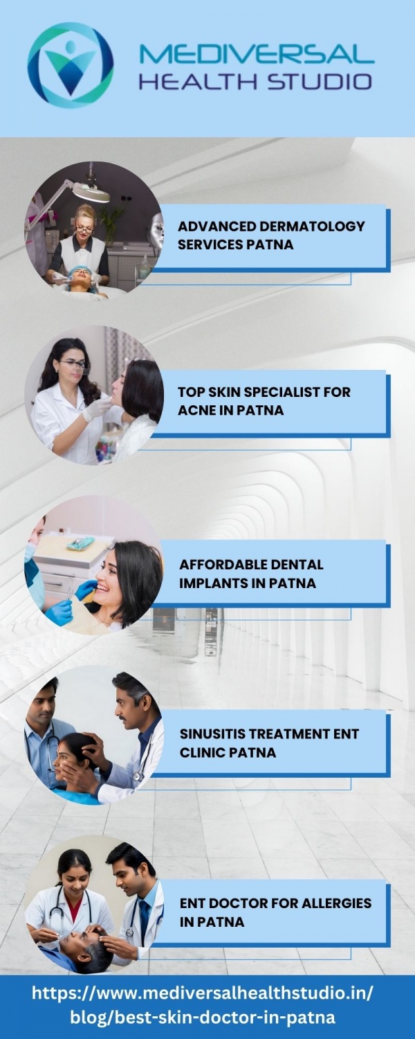 Advanced Dermatology Services Patna in Mediversal Healthstudio is a specialized facility that provides expert skin, hair, and nail care. The center is equipped with the latest dermatological technologies and offers a wide range of treatments for various skin conditions, including acne, eczema, psoriasis, and pigmentation disorders. It also provides advanced cosmetic dermatology services such as laser therapy, chemical peels, anti-aging treatments, and hair restoration solutions.