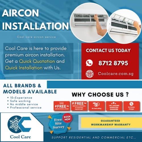 Are you look for aircon Installation for your Place? We are one of the Top notch aircon service companies In Singapore. We provide the best energy-saving aircon brand for this year at a reasonable price. If you decide to buy the aircon please Contact us at + 65 8712 8795 or Book an appointment here https://coolcare.com.sg/aircon-installation/ . Cool Care aircon service always there for you.
