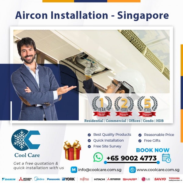 AIRCON INSTALLATION, COOLCARE is one of the Best aircon installation companies in Singapore. We offer a high-quality Aircon with installation material. We provide aircon installation for all kinds of brands and models such as split and centralized aircon.