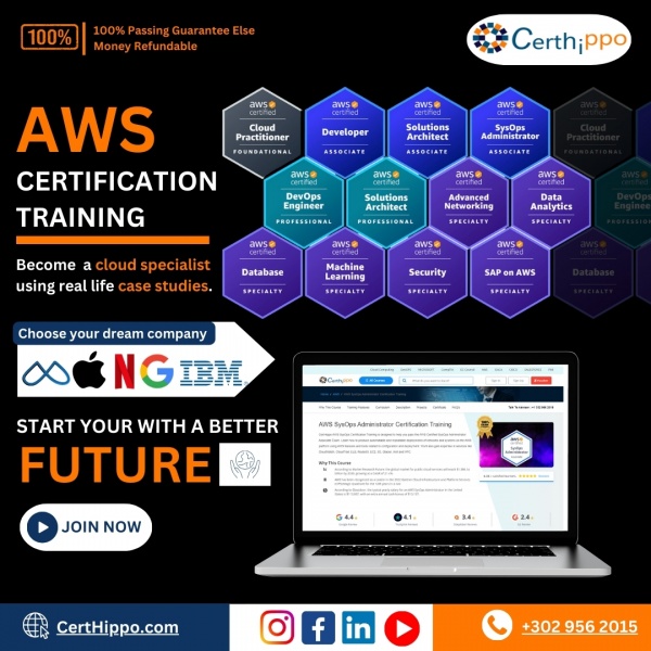 Embark on a transformative journey into the world of cloud computing with our AWS Training and Certification! 🚀 Our comprehensive courses cover a spectrum of AWS services, from foundational to advanced levels. Whether you're a beginner or a seasoned pro, our hands-on, immersive programs ensure you gain both theoretical understanding and practical experience. Earn globally recognized certifications, validate your skills, and open doors to exciting career opportunities. Join us at [Your Company Name] and master AWS to shape the future of cloud technology!
