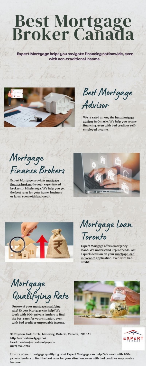 Get the best mortgage broker in Canada with Expert Mortgage! We specialize in securing financing for all situations, even bad credit or un provable income. We work with over 400 private lenders to find you the perfect mortgage solution. Call us today at (877) 357-8787 for a free consultation!