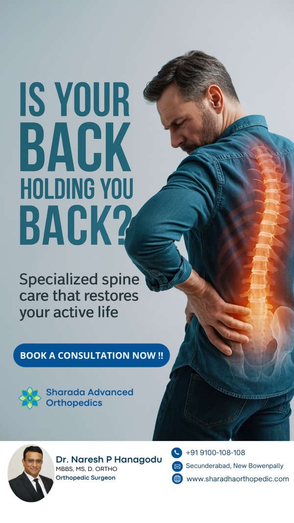 At Sharada Advanced Orthopedics, your spine health is our priority. Our lead consultant, Dr. Naresh P Hanagodu (MBBS, MS Ortho), is a highly experienced spine surgeon in Hyderabad with over two decades of surgical expertise. Recognized for his exceptional skills in treating complex spinal disorders, Dr. Naresh has successfully performed hundreds of spine surgeries, earning the trust of patients across India.