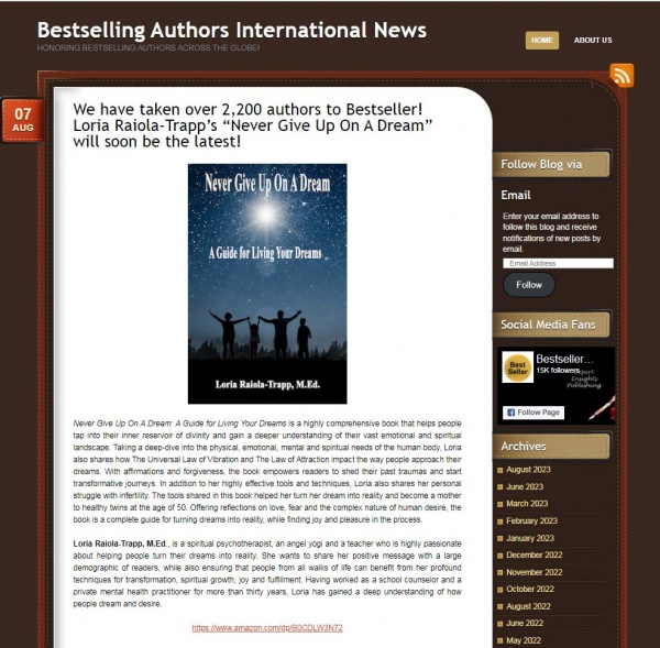 We have taken over 2,200 authors to Bestseller! Loria Raiola-Trapp’s “Never Give Up On A Dream” will soon be the latest!