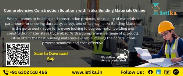 Istika,an innovative Ecommerce platform that aims to simplify the process of acquiring construction materials by offering a wide range of products from multiple vendors under one roof.Our primary goal at Istika is to prioritize the quality of our products and provide a seamless shopping experience for our customers.Ready to simplify your construction material procurement process, Visit www.Istika.in, we have customized apps for vendor and customers