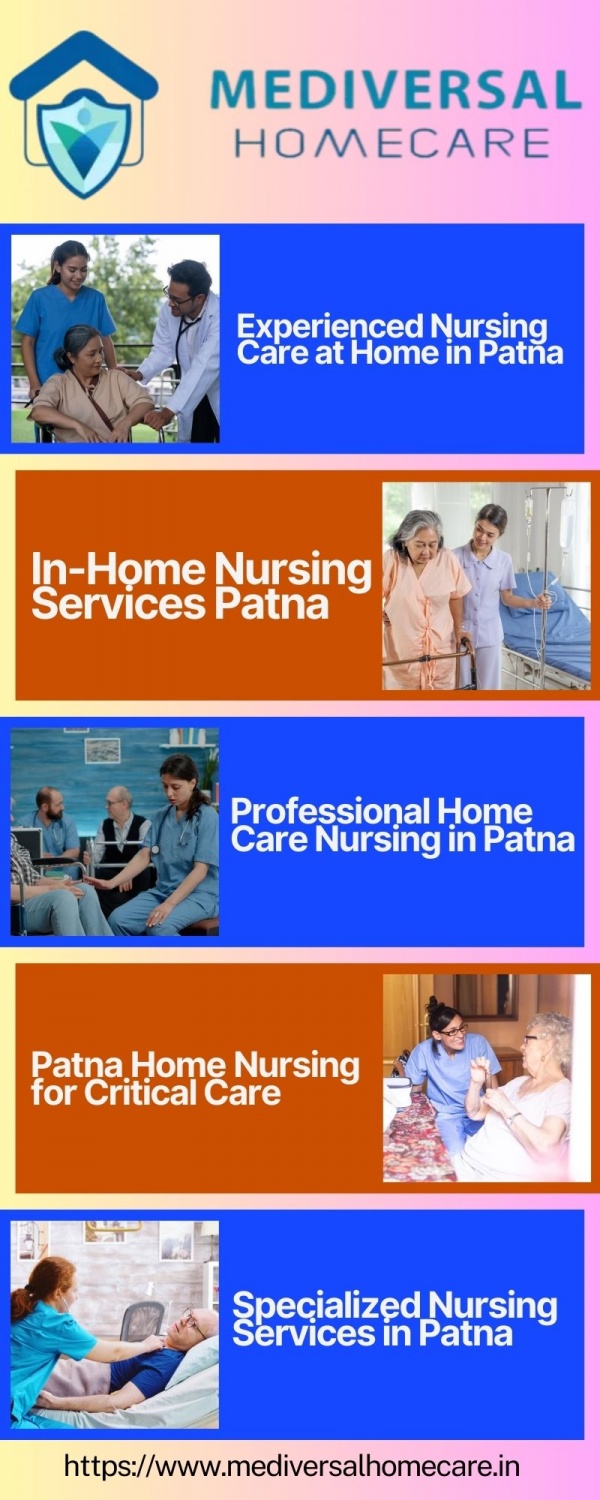 Mediversal Homecare offers top-notch, experienced nursing care at home in Patna services, designed to meet the unique needs of patients in the comfort of their own homes. Our team of skilled and compassionate nurses is trained to provide a wide range of medical and post-hospitalization care, including wound management, medication administration, elderly care, chronic disease monitoring, and more. With a focus on personalized care plans and professional expertise, we ensure the highest level of comfort and recovery for our patients. Trust Mediversal Homecare for reliable, empathetic, and professional nursing support at your doorstep.
