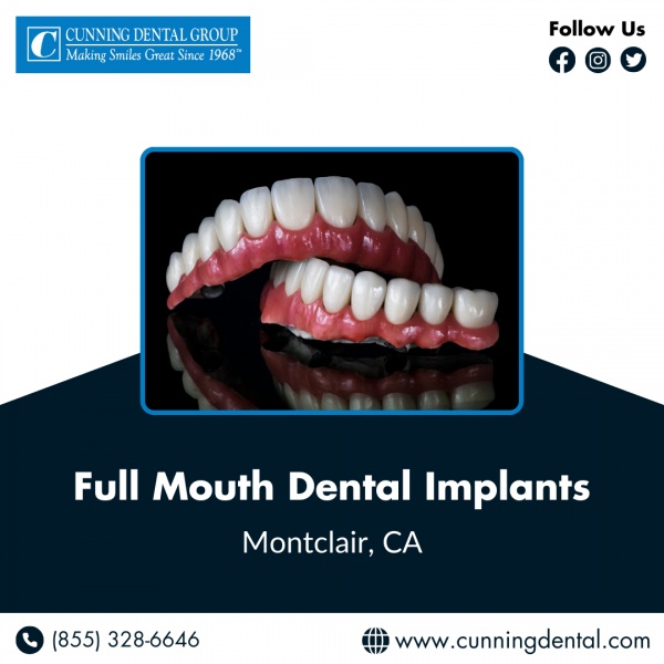Experience the transformative power of full-mouth dental implants at Cunning Dental Group in Montclair, CA. Our skilled team specializes in comprehensive implant dentistry, offering tailored solutions to restore your smile's functionality and aesthetics. Utilizing state-of-the-art techniques and personalized care, we ensure seamless integration and long-lasting results. Say goodbye to gaps and hello to renewed confidence with our expertly crafted full-mouth dental implant solutions. Whether you need single implants or full-mouth restoration, trust in our expertise to provide you with quality care. Contact us at (855) 328-6646 to schedule your consultation and embark on the journey to a fully restored smile.