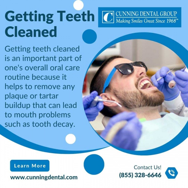 Getting teeth cleaned is a vital piece of one's overall oral care routine as it helps to remove plaque, cavities and gum disease, which can lead to mouth problems like tooth decay.
