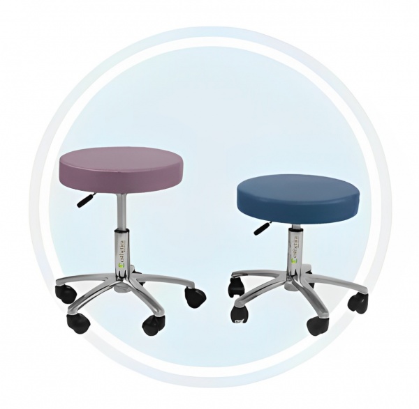 Esthetica’s Round Stool without a backrest comes with a 40-density/65mm thick round seat. It has an adjustable height, five roller safety bases with nylon castors, and comfortable soft-to-touch upholstery. This medical stool chair uses high-quality pressure die-casted components to make it long-lasting and sturdy.