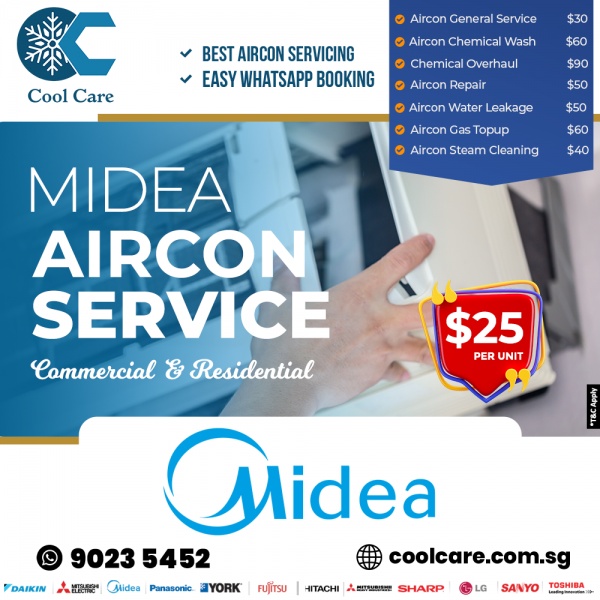 For more details: https://coolcare.com.sg/midea-aircon-installation-and-service/