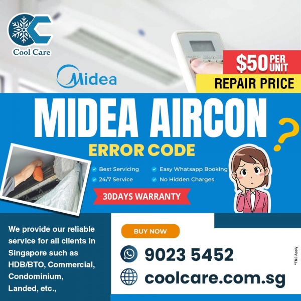 Encountering a Midea aircon error code? Coolcare Aircon specializes in diagnosing and fixing all Midea aircon error codes across Singapore. Our experienced technicians are skilled in troubleshooting Midea aircon issues, from blinking lights to system errors, ensuring fast and effective repairs. Get reliable, professional service to restore your Midea aircon’s performance with Coolcare Aircon. Contact us today for expert solutions to any Midea aircon error.