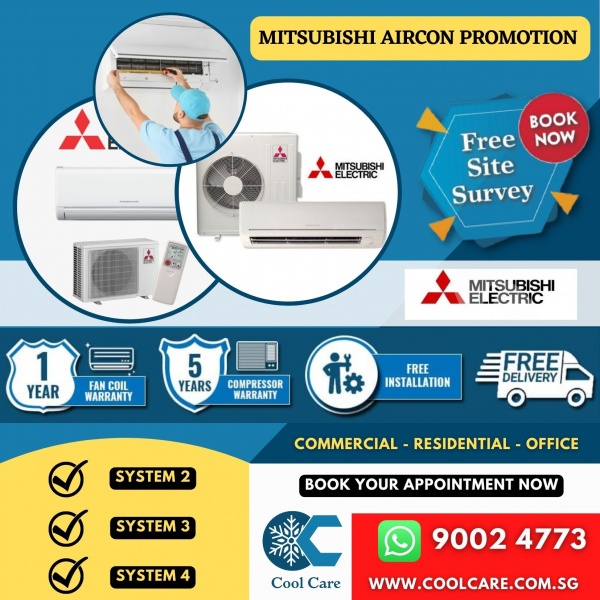 #MitsubishiAirconPromotion – Get a trusted brand of Mitsubishi aircon by here. We provide our services for all clients in Singapore. The main advantage of Mitsubishi is no maintenance issue in the future and will perform for long uncountable years by following aircon servicing. And It has R32 and R410a Refrigerants. And get the best warranty for Fan coil, Compressor, and workmanship. Book Now at +65 9002 4773.