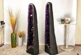 Crystal designs from E2D Crystals and Minerals are fantastic. Large Amethyst Geodes are a strong and versatile healing stone. They balance our energy fields, allowing us to feel relaxed and alert. The energy of the Pair of Tall Amethyst Cathedral Geodes protects us from bad energy. It enhances our instinct and intelligence, an ideal combination of decision-making and wisdom.