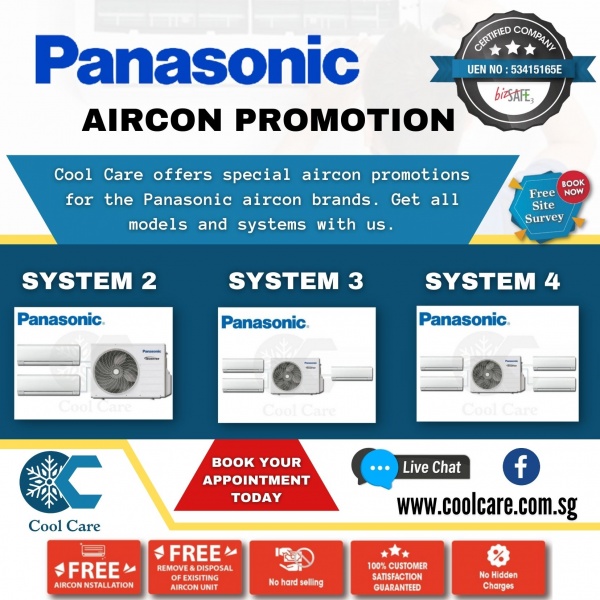 Get Panasonic aircon promotion in Cool Care at the best reasonable price. Support all models and systems