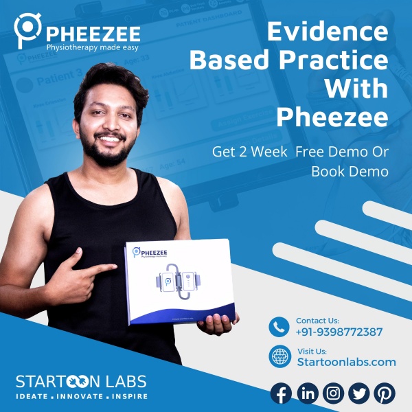 The patient can wear Pheezee, a pocket-sized wearable device by Startoon Labs while participating in physiotherapy sessions. The gadget provides electromyogram (EMG) and range of motion (ROM) biofeedback in real time for the engaged muscle. The gadget wirelessly links to an Android phone or tablet to display reports. Whenever necessary, the physiotherapist can view progress reports broken down by sessions, weeks, months, and overall.