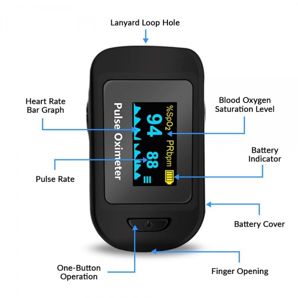 The Santamedical finger pulse oximeter measures your blood oxygen saturation and pulse rate. This device is designed for occasional and spot check monitoring.