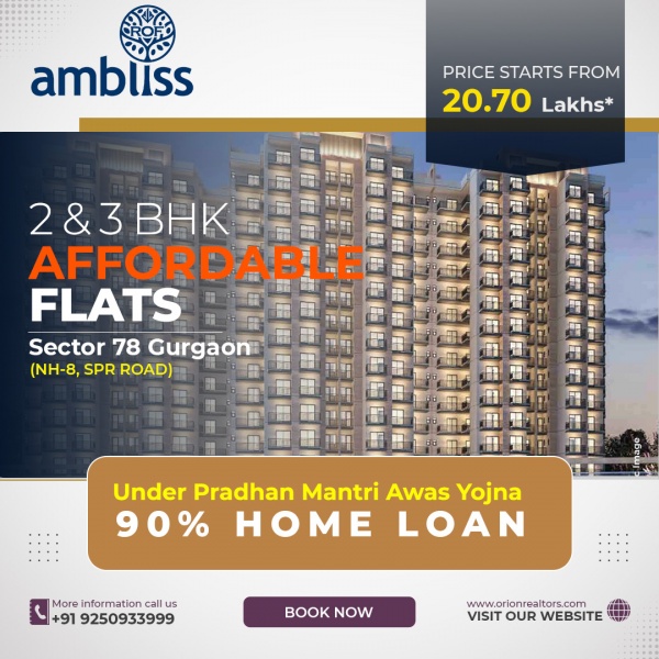 ROF Group launched new affordable housing project ROF Ambliss Sector 78 at NH-8 and SPR Road, Gurgaon. ROF Ambliss 78 offer 2BHK and 3BHK Flats at affordable prices. Call 9250933999 For Online Booking.