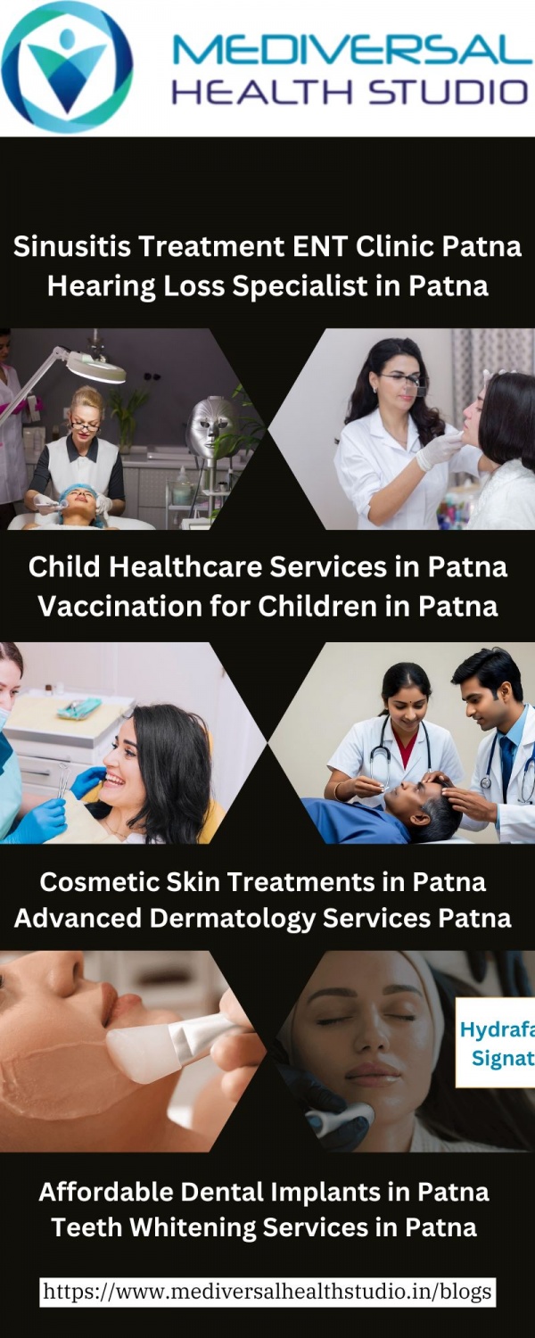 Mediversal Healthstudio in Patna offers specialized care for sinusitis and other ENT conditions, providing advanced diagnostic and treatment solutions tailored to each patient’s needs. Our expert ENT specialists utilize cutting-edge technology to manage both acute and chronic sinusitis, employing medical therapies, minimally invasive procedures, and surgical options like Functional Endoscopic Sinus Surgery (FESS) when necessary. With a patient-centric approach and a focus on lasting relief, our clinic ensures effective treatment for nasal congestion, sinus infections, and related discomfort, helping you breathe easier and improve your quality of life.