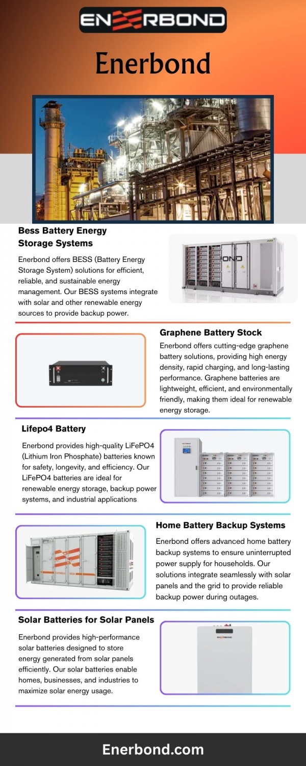 Enerbond provides reliable solar battery backup solutions for homes, ensuring uninterrupted power supply even during grid outages. Our batteries store excess energy generated from solar panels, optimizing usage and reducing electricity bills. Designed with high-performance lithium-ion and LiFePO4 technologies, Enerbond solar battery backups are safe, durable, and long-lasting. With easy installation and intelligent energy management, our systems integrate seamlessly with your existing solar setup, providing efficiency, sustainability, and energy independence. Trust Enerbond for home solar battery backup solutions that empower households with reliable, eco-friendly power while maximizing the benefits of renewable energy systems.
