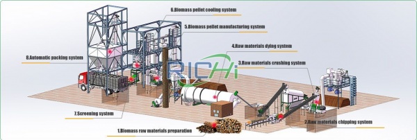 Richi Machinery supply complete wood pellet production line with 1-40t/h production capacity. The raw material to make wood pellets are sawdust, wood chips, wood shavings, etc. The main equipment of wood production is wood pellet machine, wood chipper machine, wood hammer mill, rotary drum dryer, counter-flow cooler, packing machine, conveyors and electrical control equipment, etc. Our wood pellet plant establishments are staffed with qualified sales, engineering and service personnel and are well stocked with dies, parts and accessories. This ensures prompt, efficient processing of all customer service requirements.